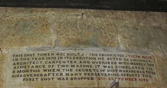 Fake news? The sign heralding the eight-month completion of the Shot Tower.