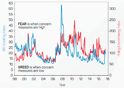 Chart 2: Volatility, economic and political uncertainty: investor concerns are currently low